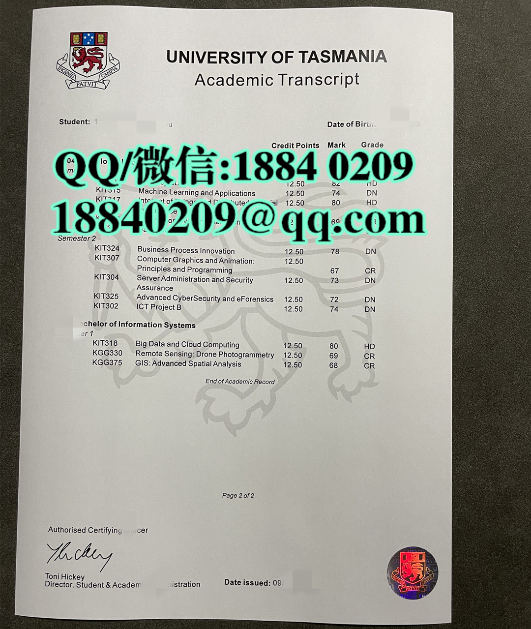 澳洲塔斯玛利亚大学成绩单,University of Tasmania transcript