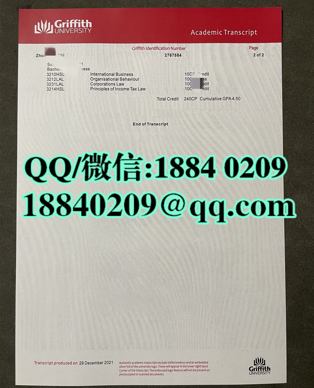 澳洲格里菲斯大学成绩单,Griffith University transcript