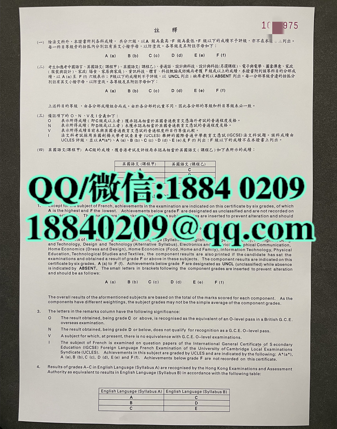2006年香港会考证书,香港CE证书,定制香港会考证书成绩单