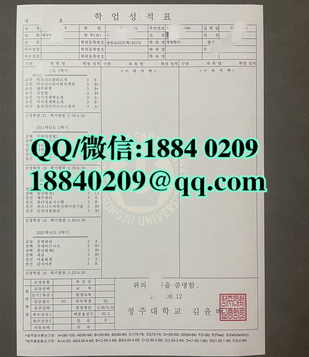 韩国清州大学cheongju university成绩单,cheongju university transcript