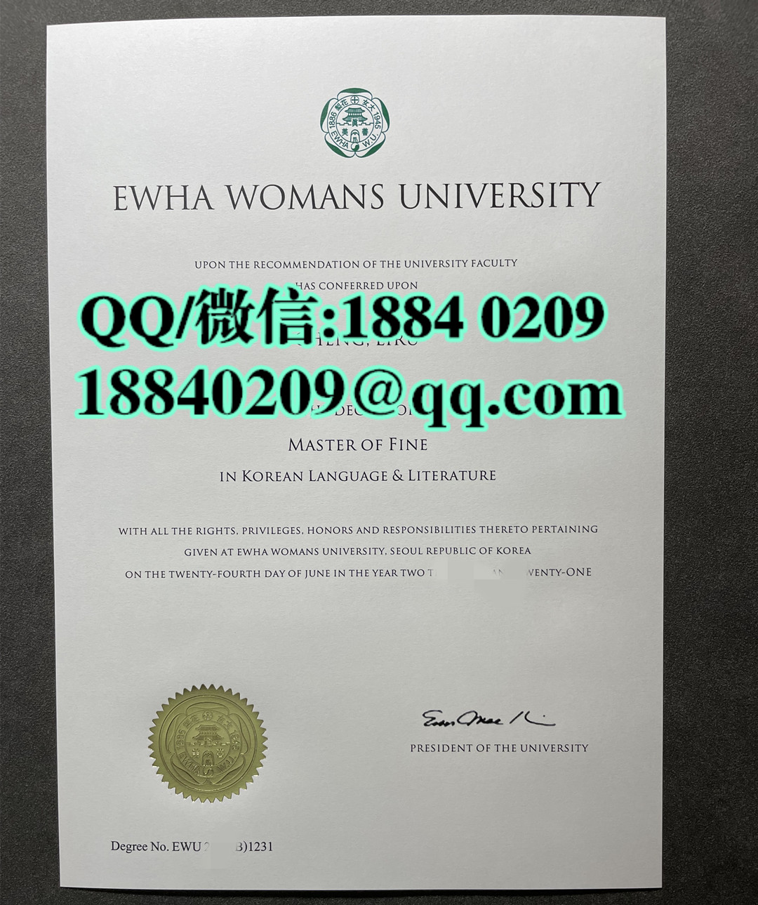 韩国梨花女子大学毕业证,韩国梨花女子大学学位证英文版,Ewha Womans University diploma degree