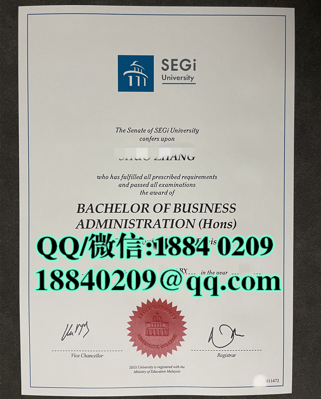马来西亚世纪大学毕业证(SEGi毕业证书),SEGi University diploma