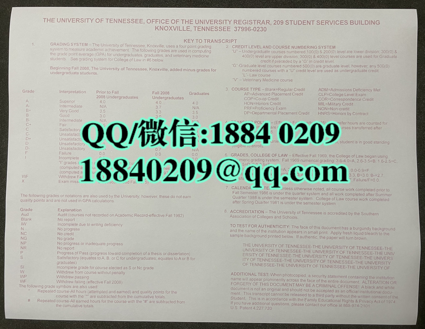 美国田纳西大学成绩单案例,University of Tennessee transcript