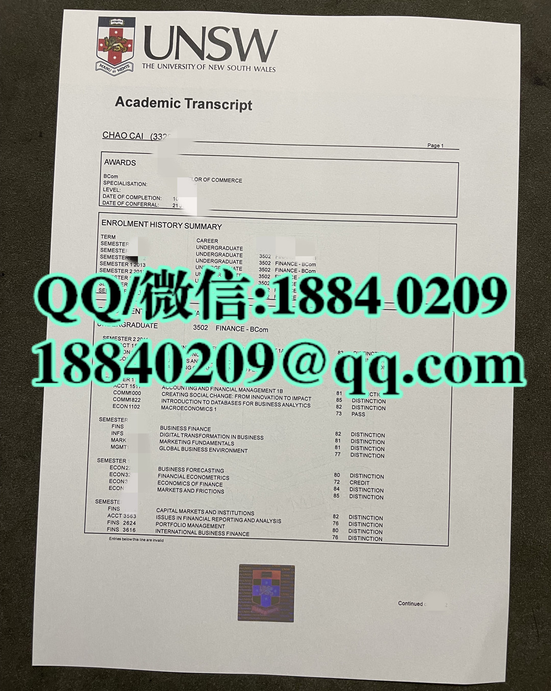 澳洲新南威尔士州大学成绩单, University of New South Wales transcript