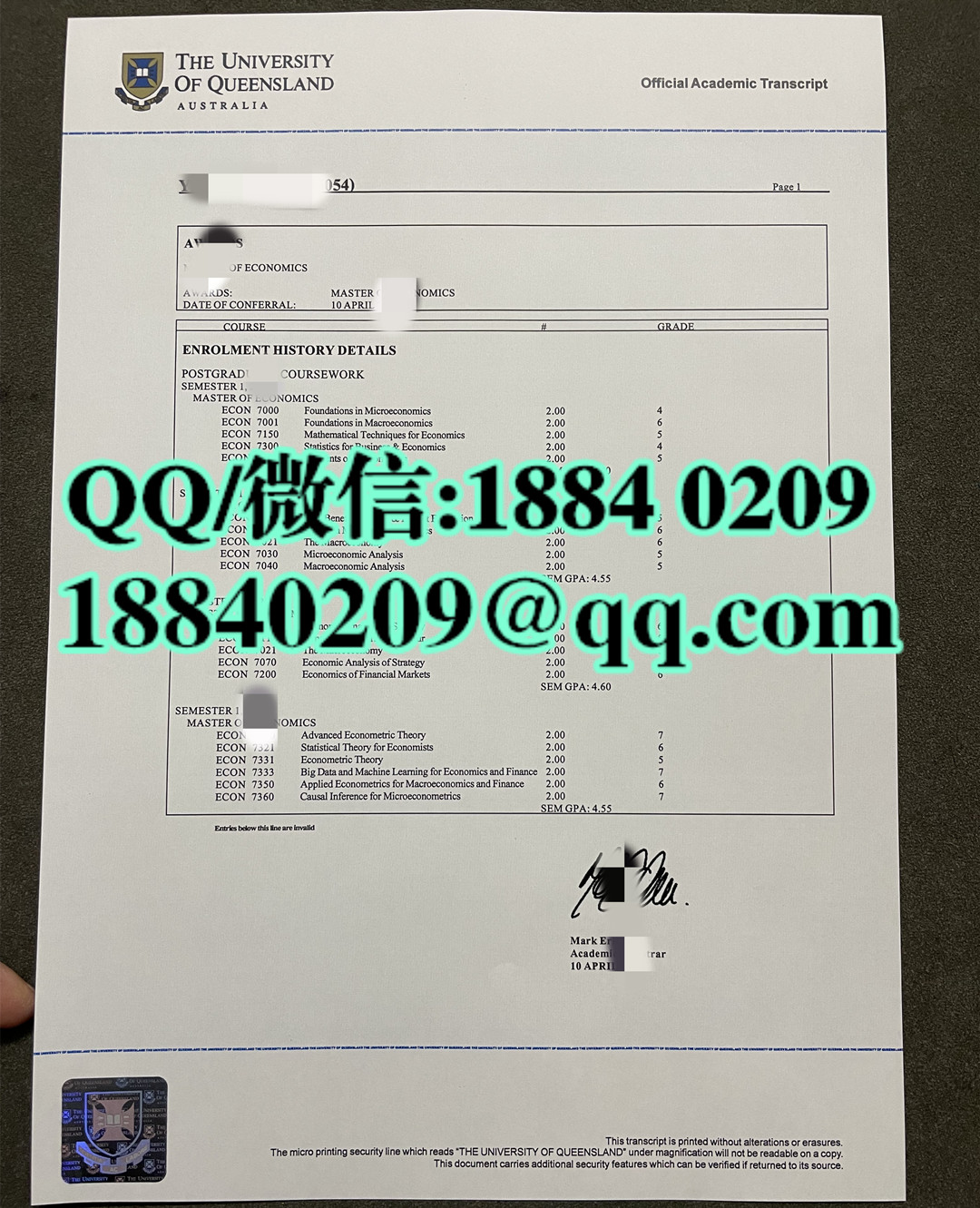 澳洲昆士兰大学成绩单,University of Queensland transcript