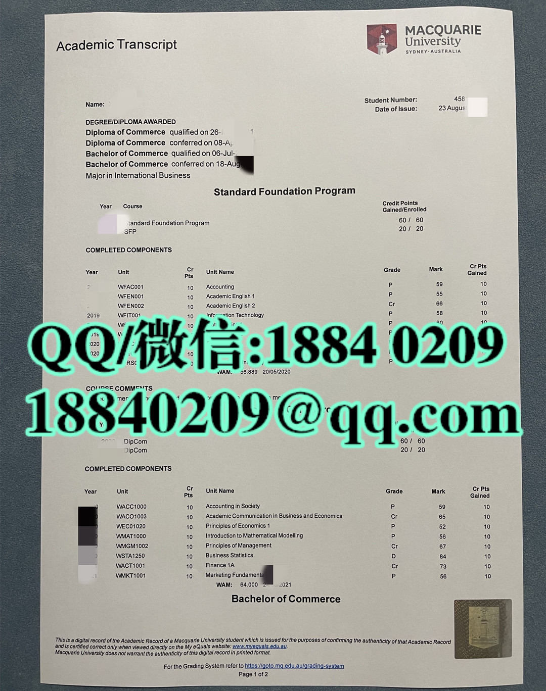 2023年澳洲麦考瑞大学毕业证成绩单,Macquarie University diploma degree