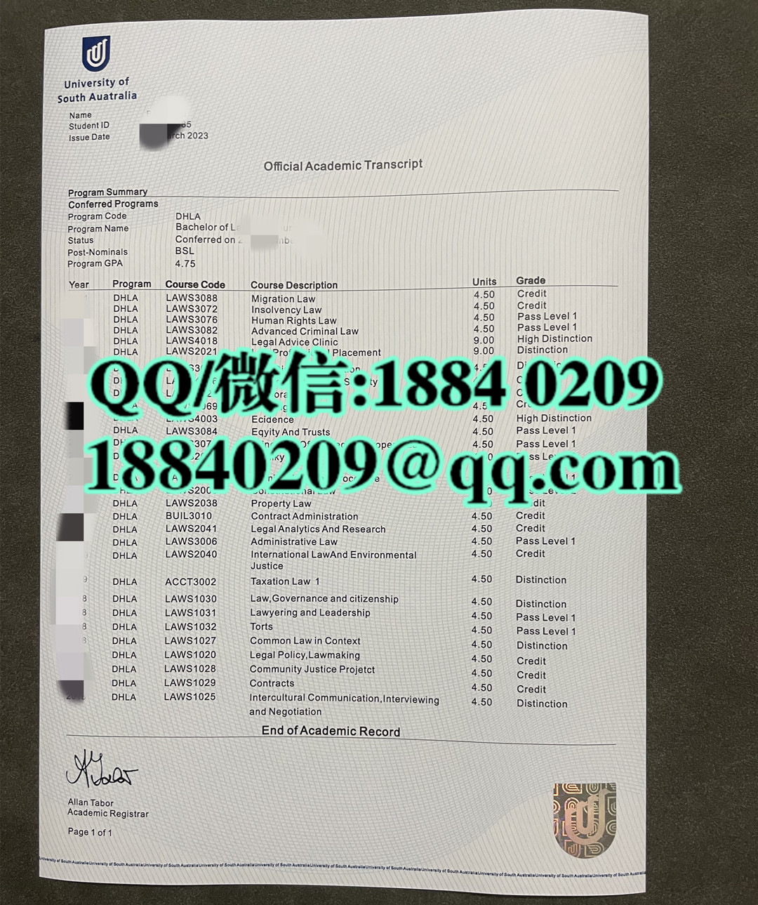 澳大利亚南澳大学成绩单,University of South Australia transcript
