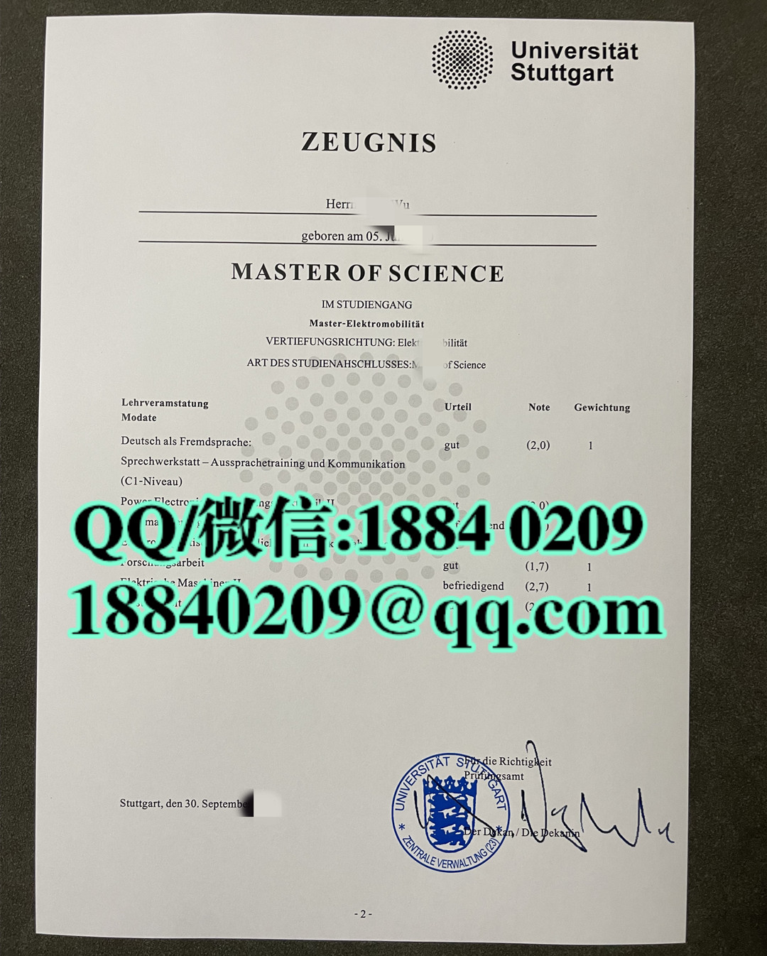 德国斯图加特大学成绩单,University of Stuttgart transcript