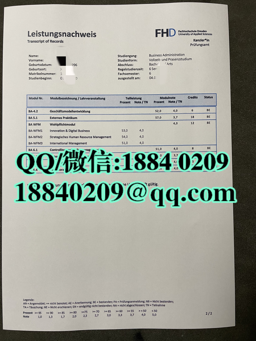 德累斯顿应用技术大学成绩单,Fachhochschule Dresden transcript