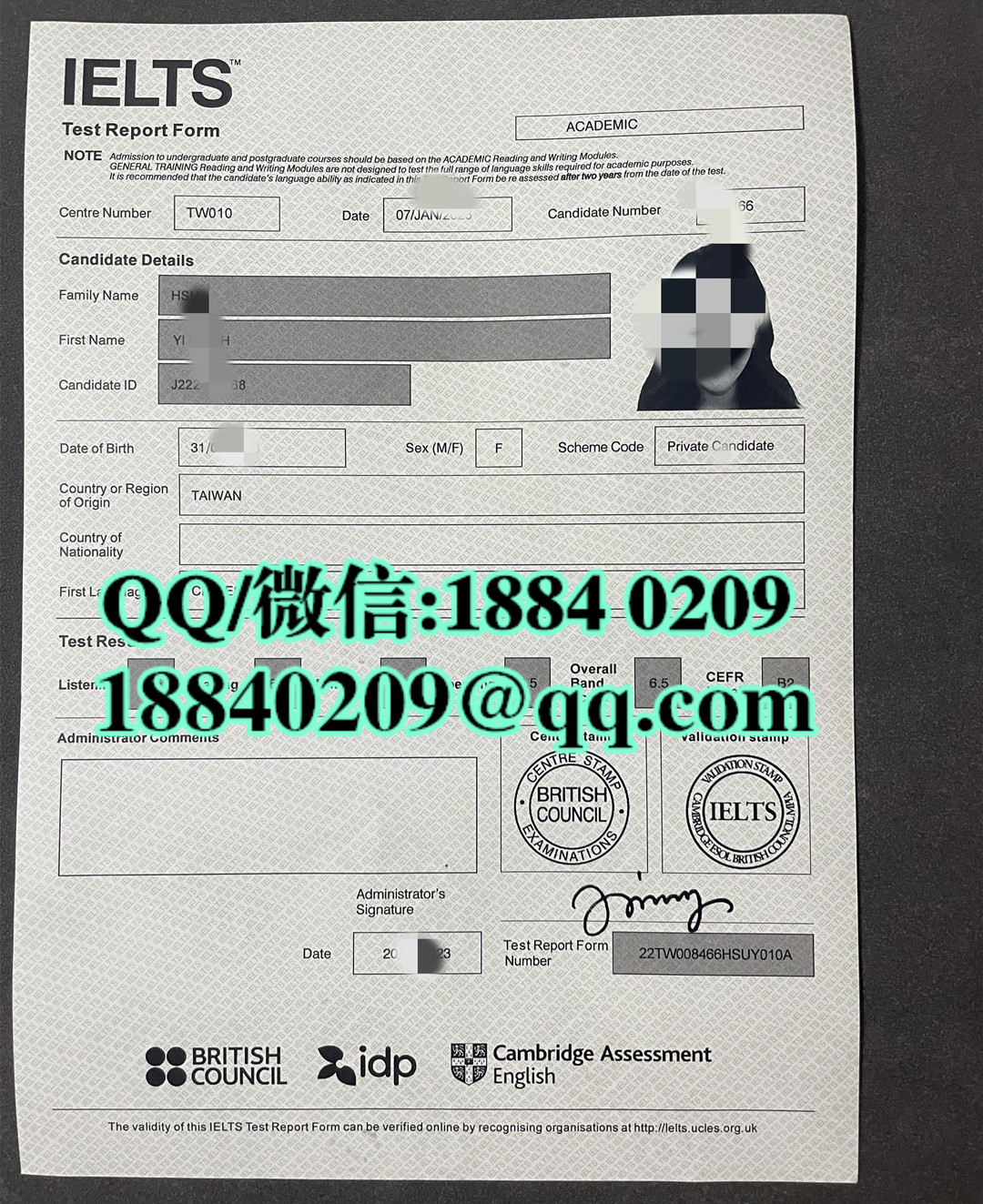台湾雅思成绩单定制,Taiwan IELTS score report