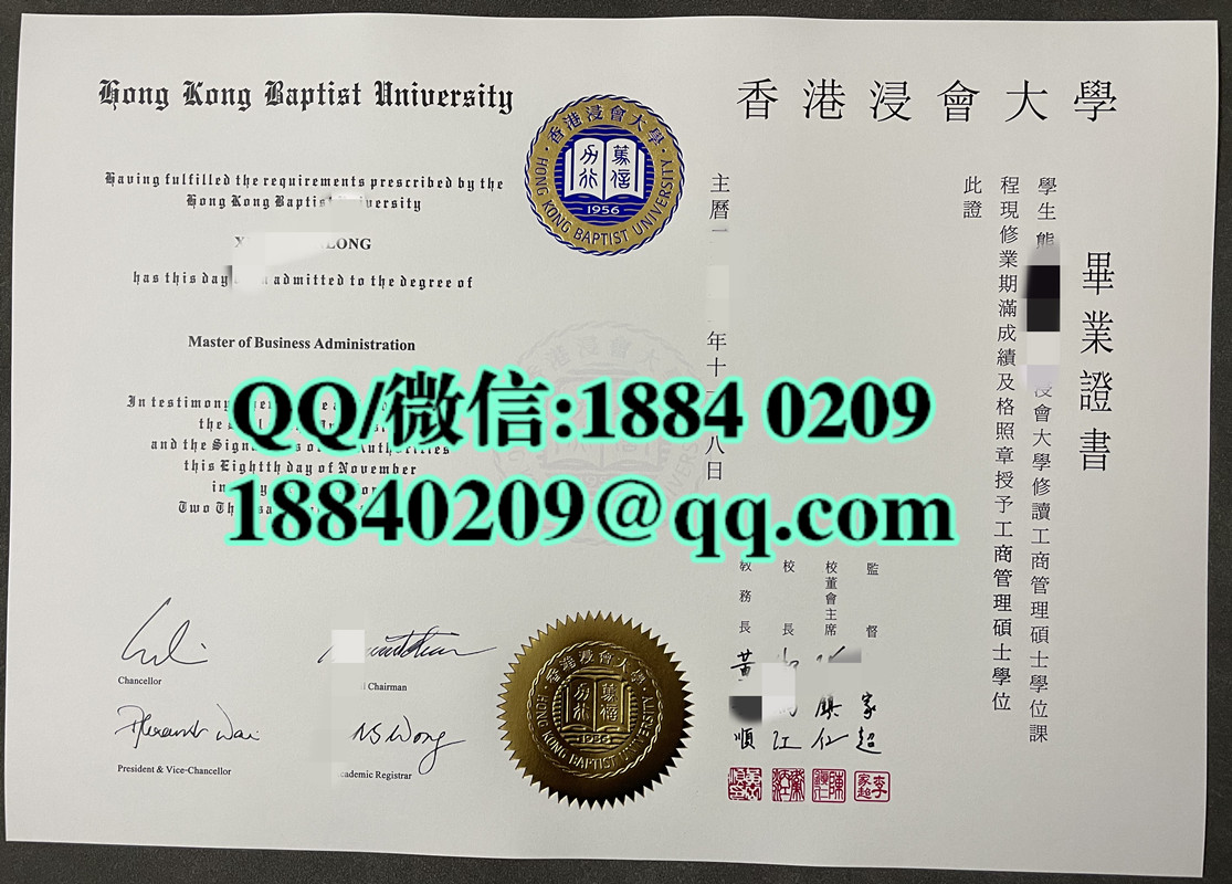 香港浸会大学硕士学位毕业证,香港浸会大学硕士文凭样本