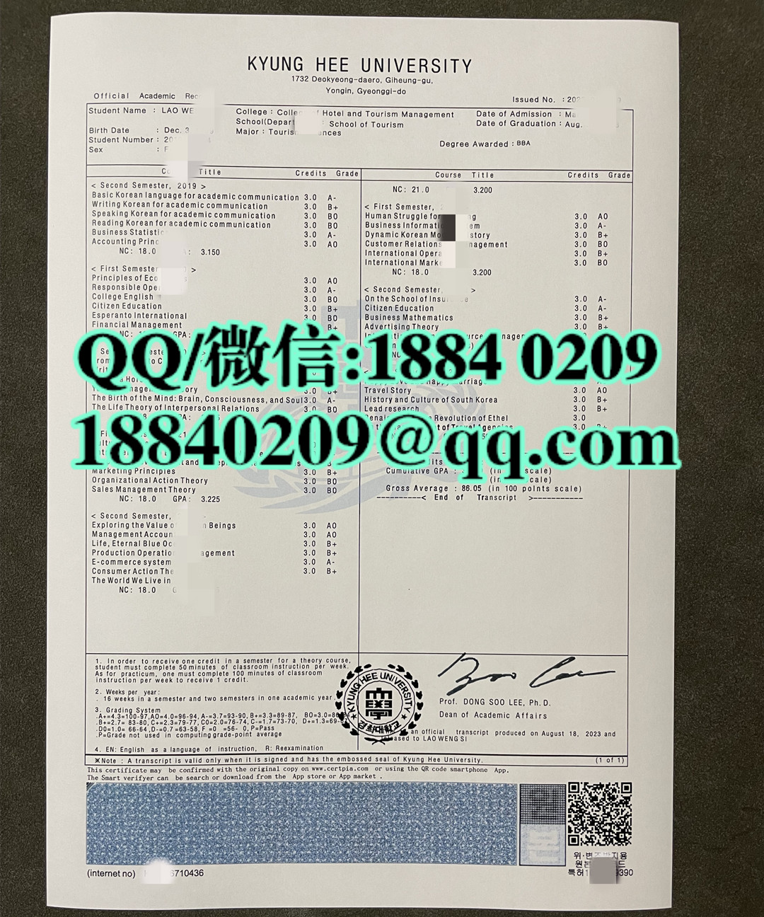韩国庆熙大学kyunghee university成绩单,kyunghee university transcript