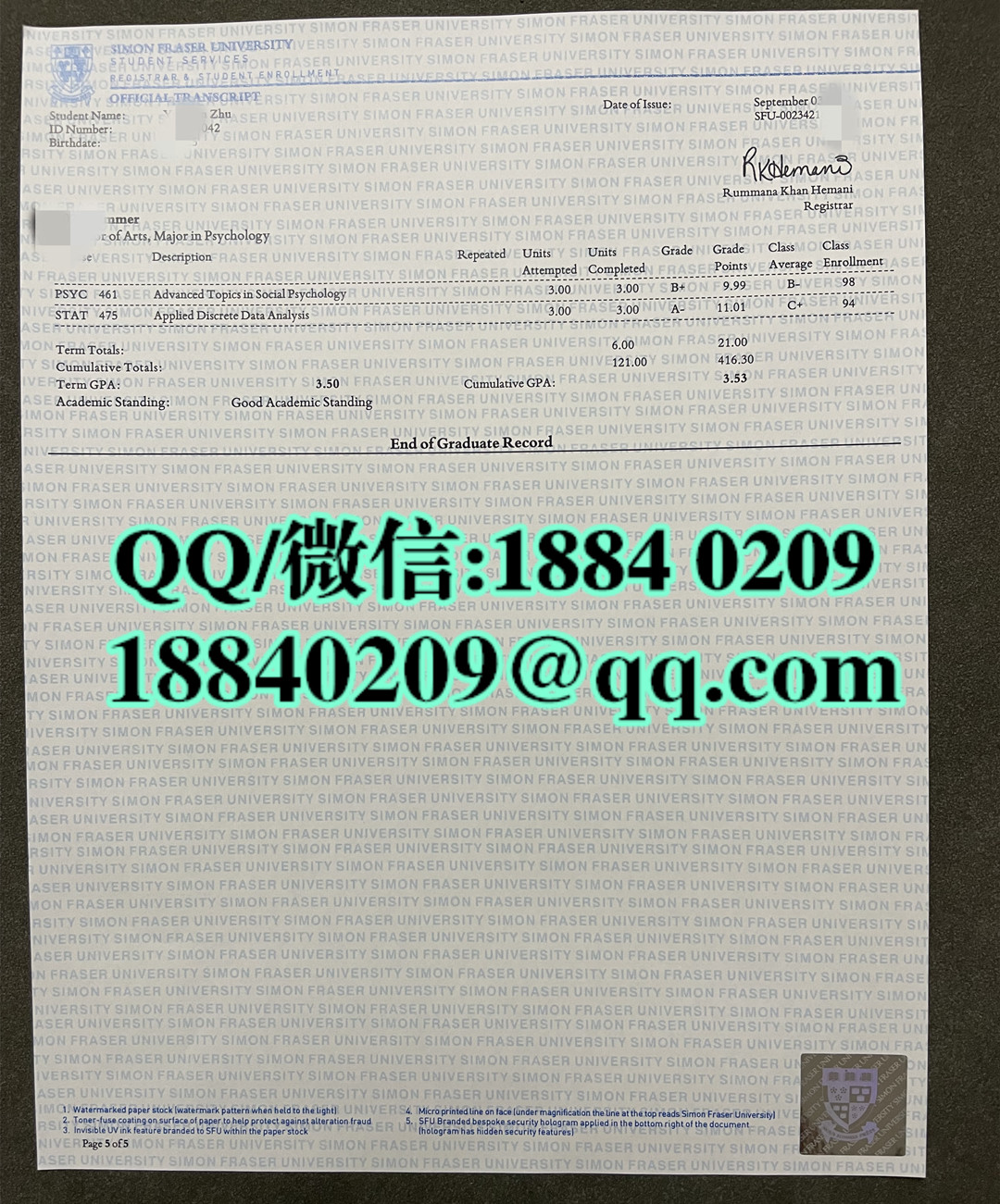 加拿大SFU大学成绩单,Simon Fraser University transcript