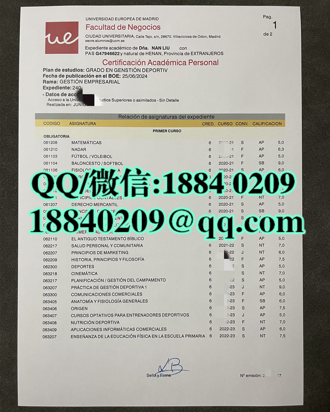 马德里欧洲大学成绩单,Universidad Europea MADRID transcript