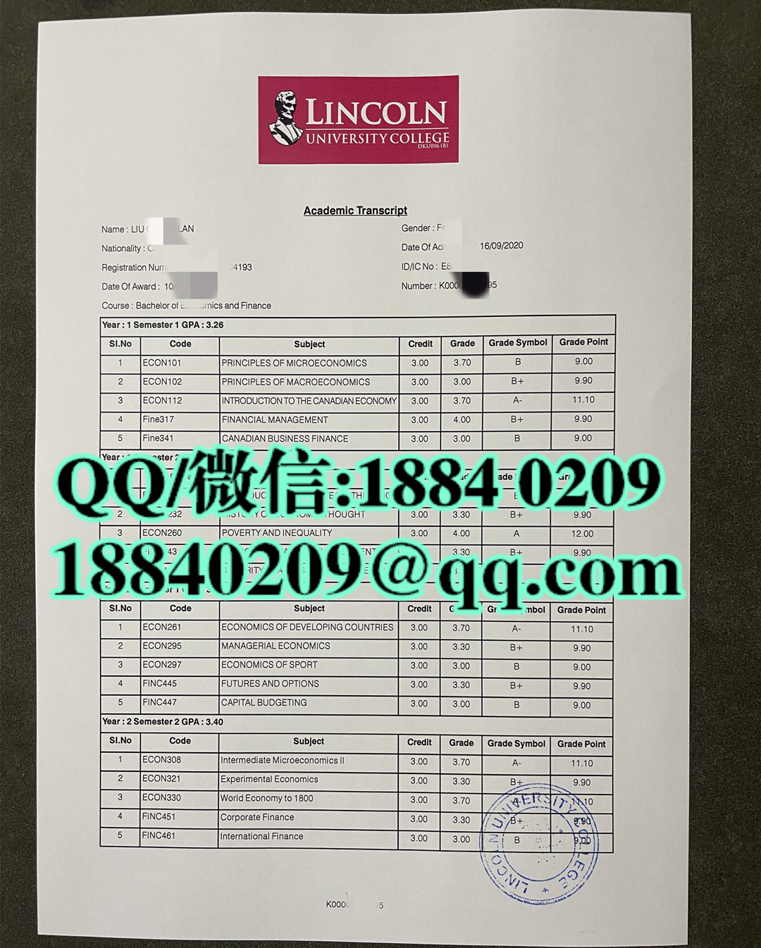 马来西亚林肯大学学院lincoln university college成绩单,lincoln university college transcript