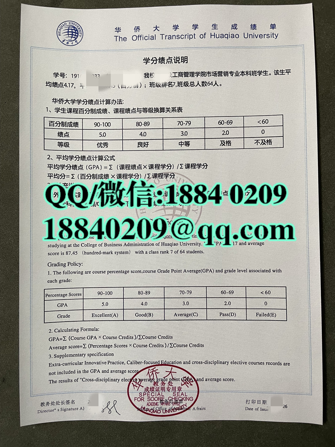 华侨大学成绩单定制,福建华侨大学成绩单HUAQIAO UNIVERSITY transcript