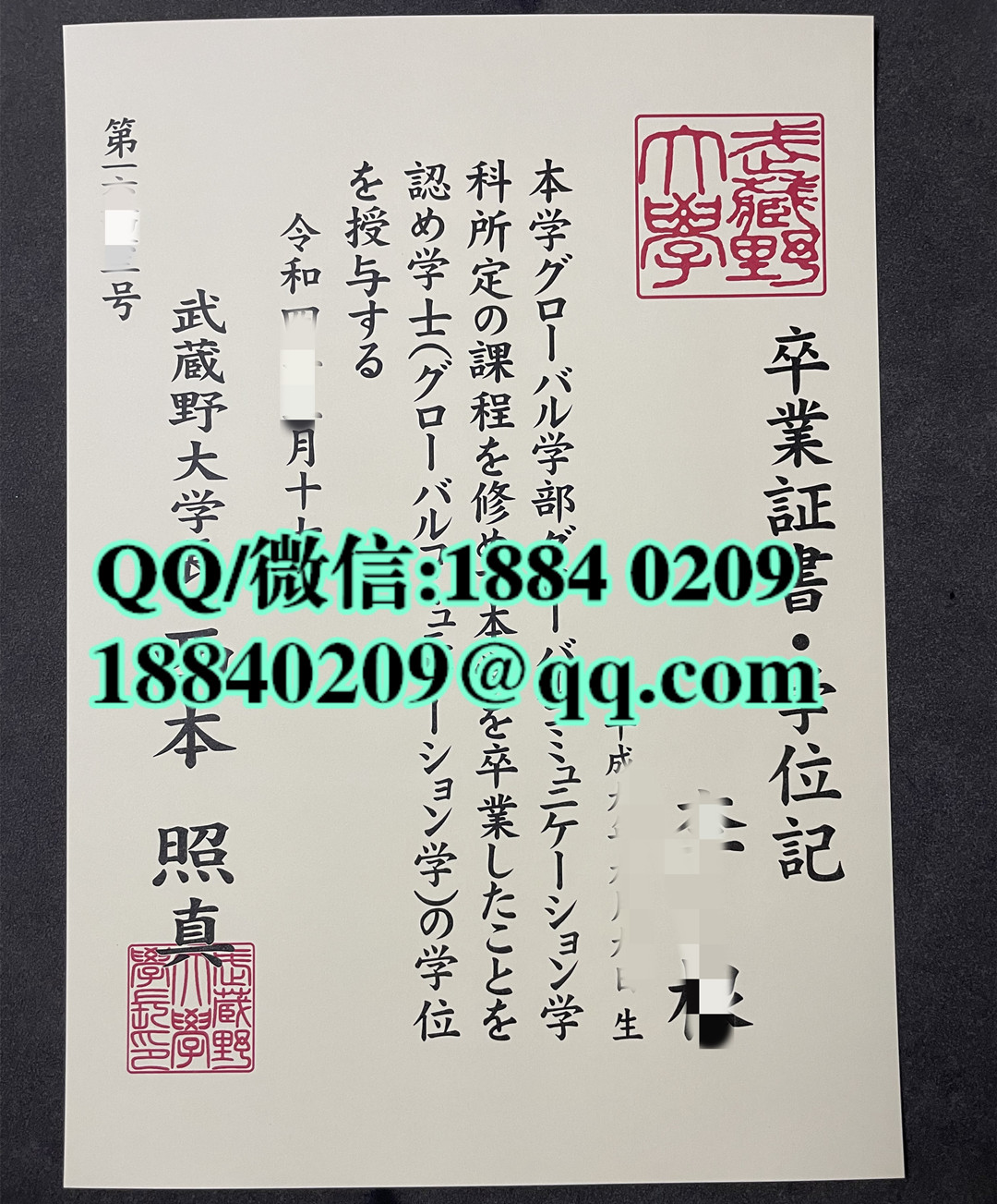 日本武藏野大学卒业证书学位记,日本武藏野大学毕业证案例