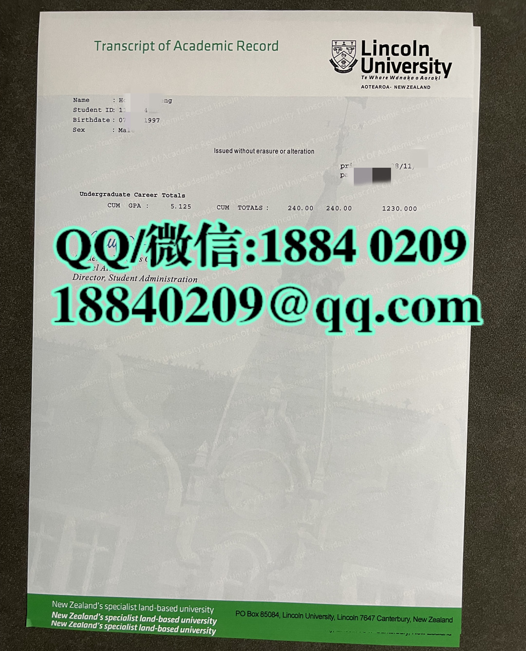 新西兰林肯大学成绩单,Lincoln University transcript
