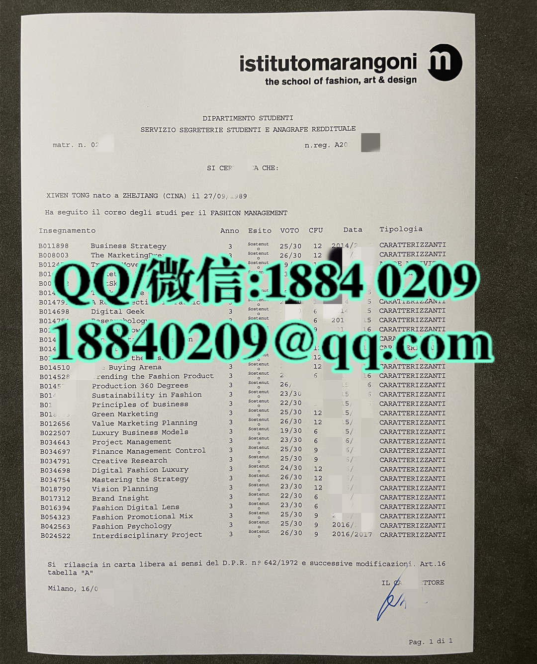 意大利马兰欧尼学院毕业证成绩单,ISTITUTO MARANGONI diploma degree