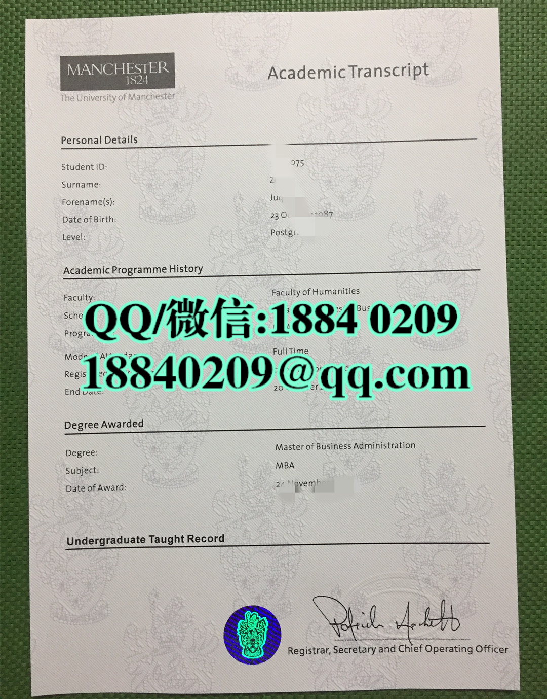 英国曼彻斯特大学MBA硕士成绩单,University of Manchester MBA transcript