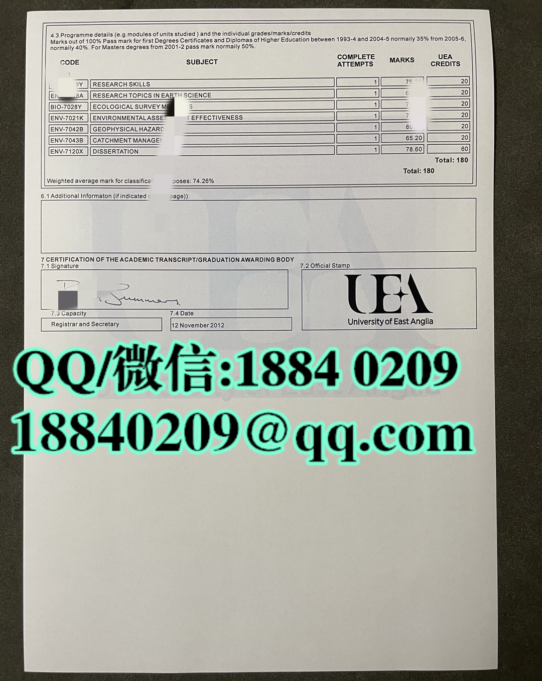 英国东安格利亚大学成绩单,University of East Anglia transcript